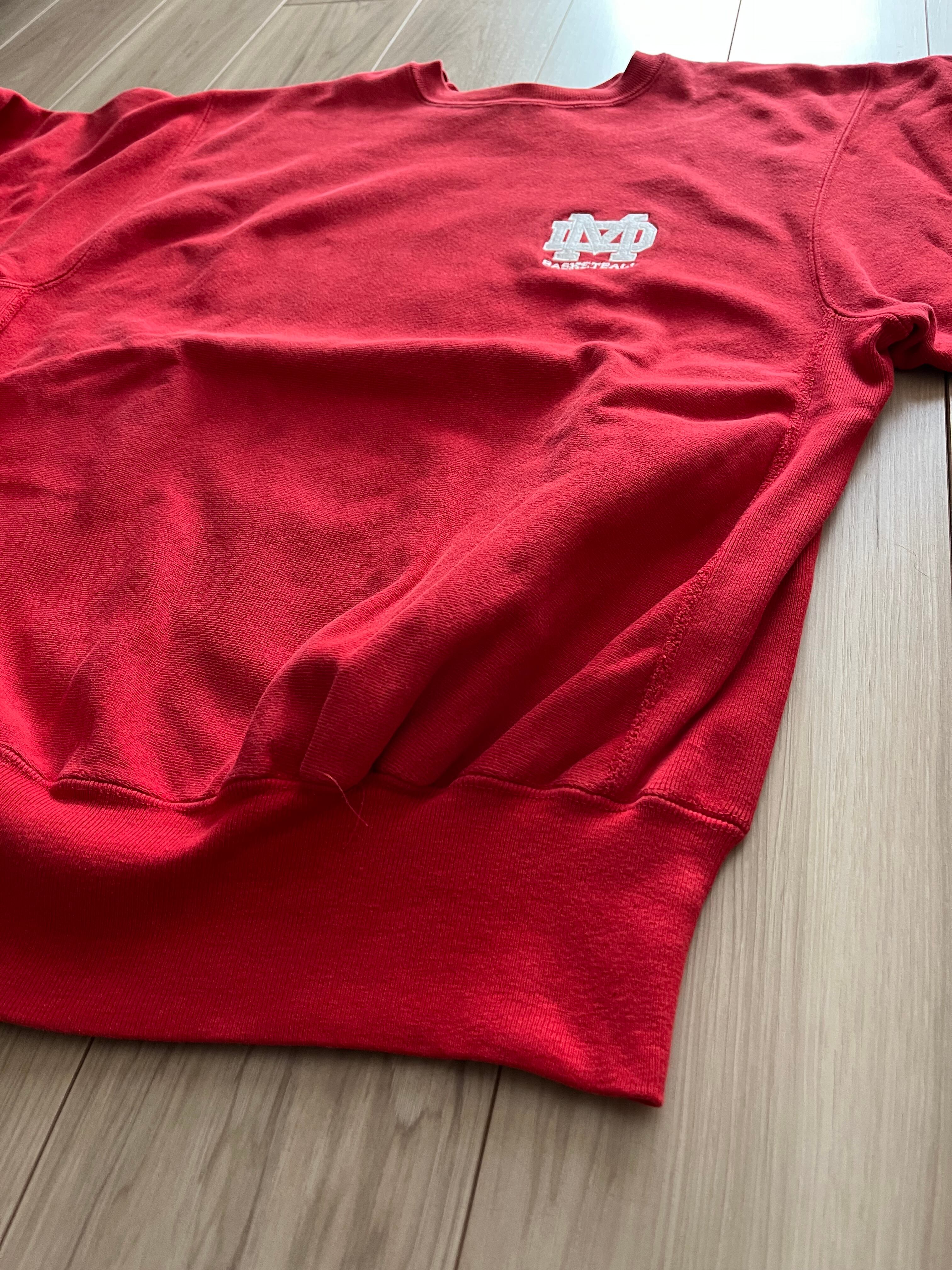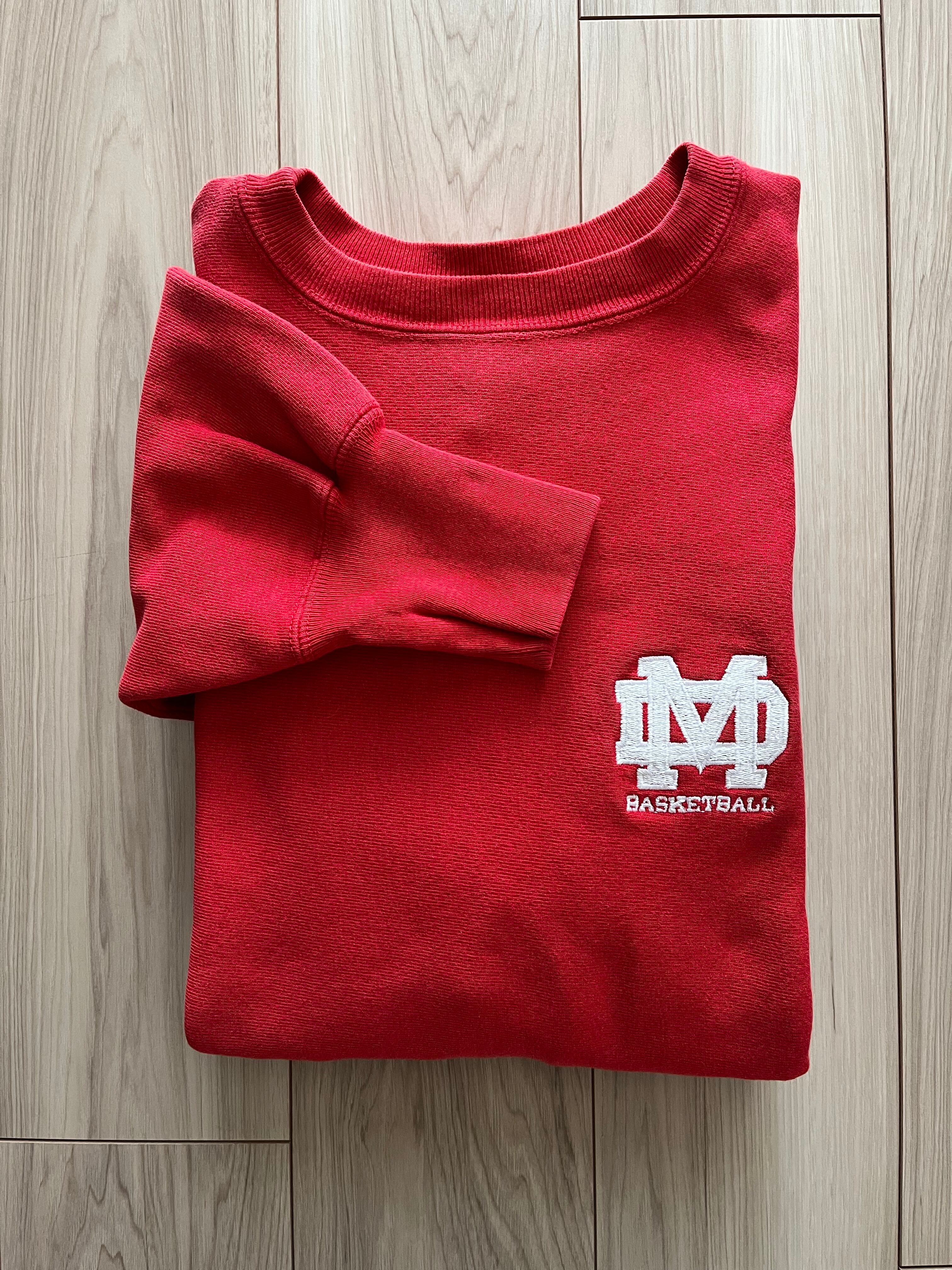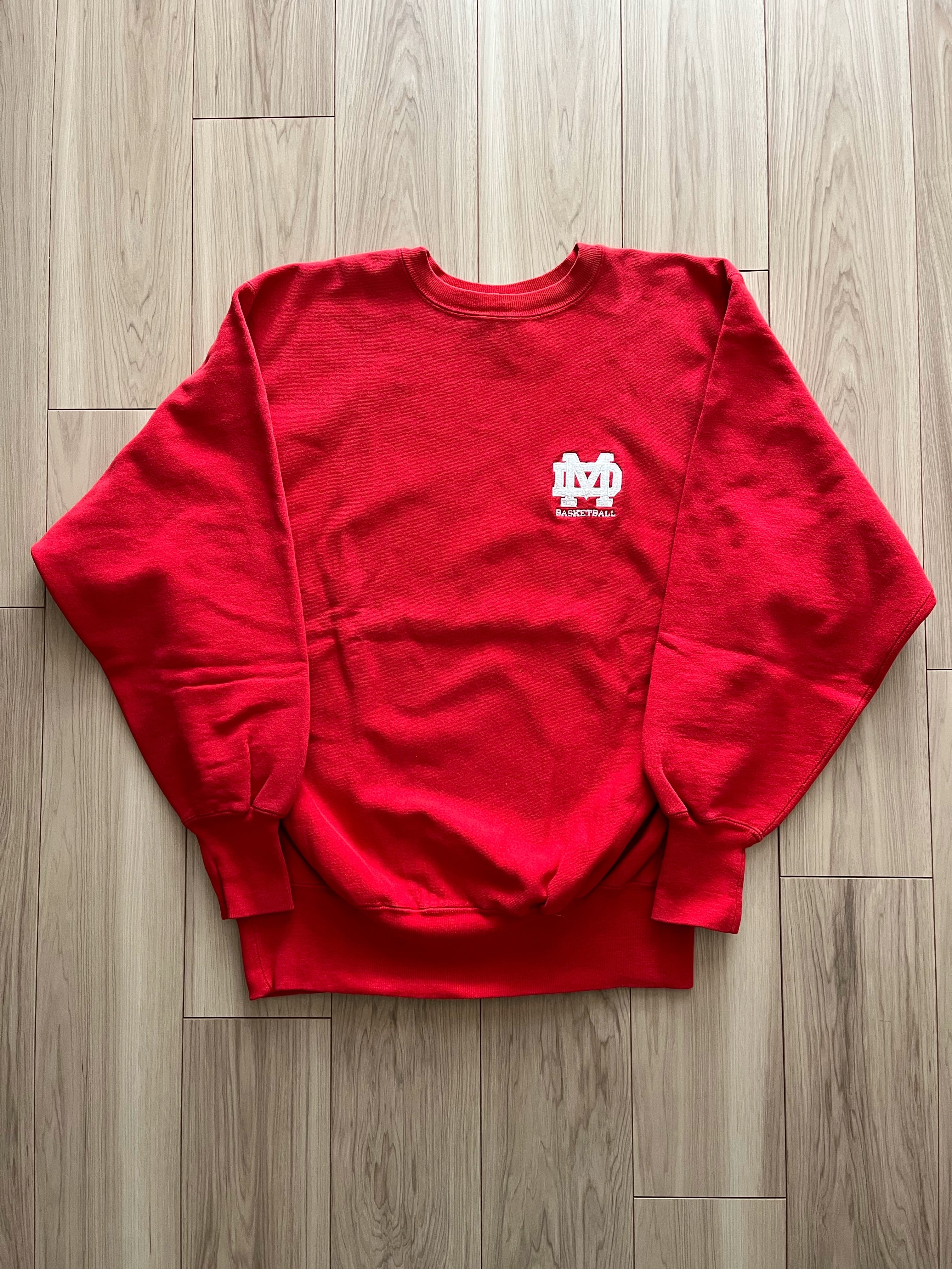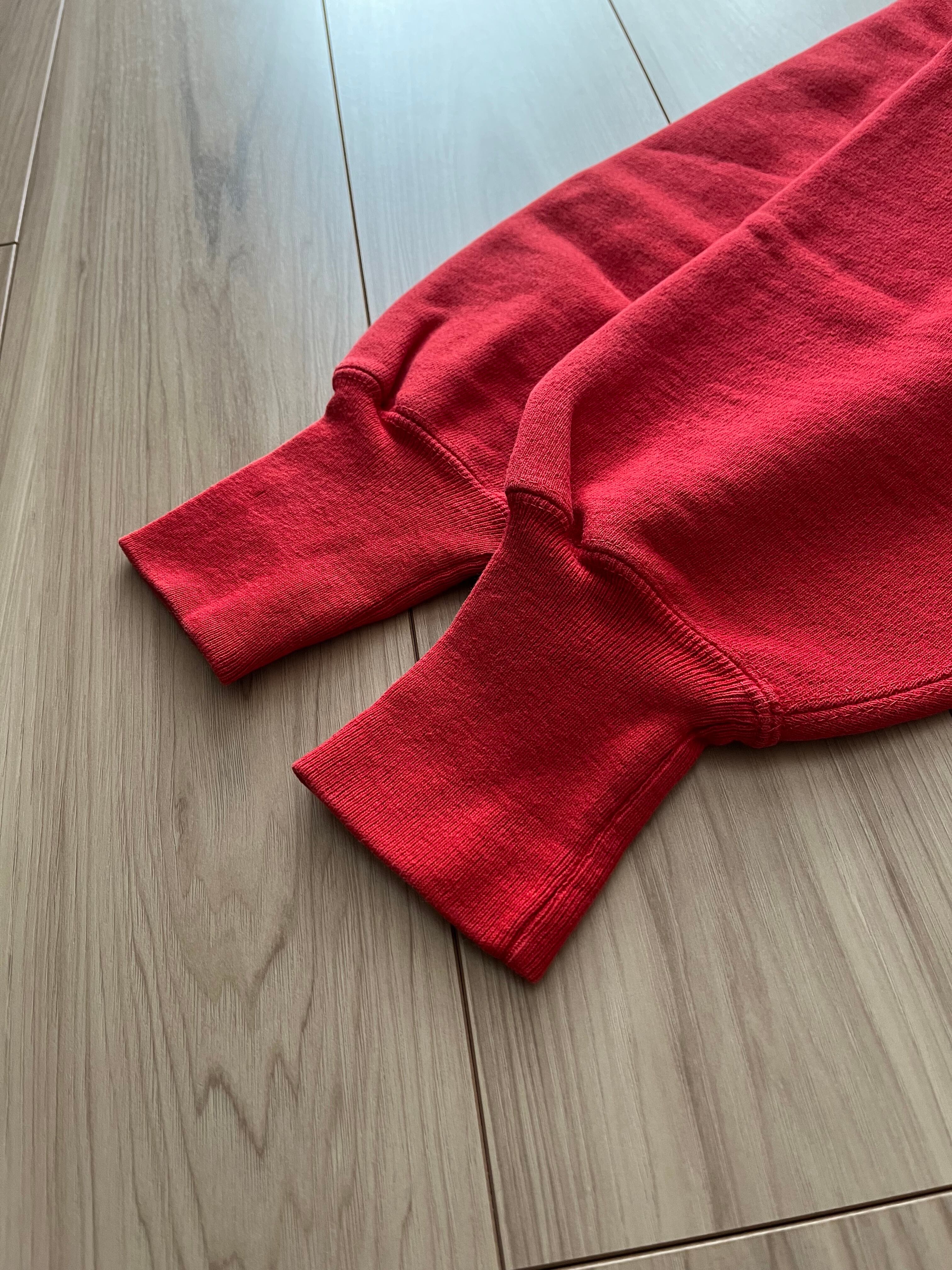 スクールカラーのレッドボディのリバースウィーブ。